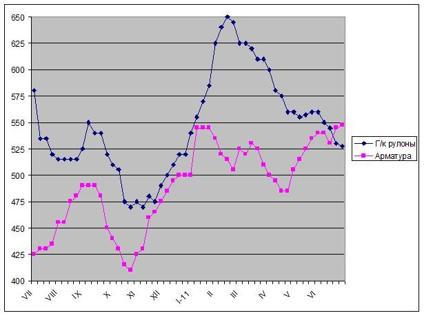 Как ни странно, в более выгодном положении находятся в последнее время европейские производители длинномерного проката. В региональной строительной отрасли все же начался сезонный подъем, а потребители и дистрибуторы решили пополнить запасы перед началом периода отпусков. Увеличение спроса позволило европейским мини-заводам компенсировать недавнее подорожание металлолома и поднять цены на арматуру и катанку на 15-20 евро за т в течение июня. Стоимость арматуры на внутренних рынках крупнейших стран ЕС поднялась до 540-555 евро за т EXW, хотя при экспорте производителям из Южной Европы приходится довольствоваться 515-520 евро за т FOB.