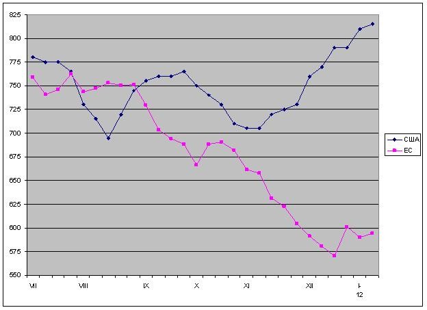 Экономика США в настоящее время производит удивительно благоприятное впечатление на фоне глубокого спада в Европе и депрессии в странах Восточной Азии. Хотя строительство в Америке до сих пор остается в кризисном состоянии, и перспектив улучшения в обозримом будущем не предвидится, промышленность демонстрирует вполне пристойные темпы роста. В лидерах ходят автомобилестроение, энергетика и связанные с ней машиностроительные и трубопрокатные производства, а также военно-промышленный комплекс.