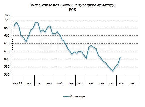 Резкое подорожание металлолома в Турции в конце октября – начале ноября поставило металлургов перед необходимостью срочного увеличения стоимости готовой стальной продукции. Еще перед Курбан-Байрамом (24-30 октября) турецкие компании приступили к поднятию котировок на арматуру и катанку, а в ноябре, вернувшись на рынок, они удвоили свои усилия.