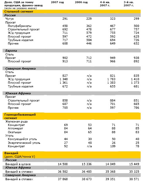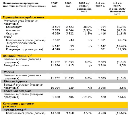 4 В пересчете на чистый ванадий. Данные включают производственные результаты "Стратиджик Минералз Корпорейшн", консолидируемые с сентября 2006 г., и "Хайвелд Стил энд Ванадиум Корпорейшн", консолидируемые с мая 2007 г.