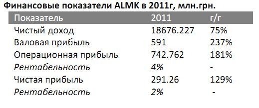 "Мы полагаем, что планы АМК выглядят слишком оптимистично даже при улучшении внешней конъюнктуры. С помощью российских акционеров заводу удалось решить проблемы с оборотным капиталом и запланировать рост выпуска в 2012г. В начале 2012 г АМК получил 5-ти летний кредит на $865 млн. А новые доменные печи №3 и №4 будут запущены вместе в установками ПУТ (пылеугольное топливо). Положительные финансовые результаты связаны с получением одноразового внеоперационного дохода в 2011 г.", - приводятся в отчете слова аналитика инвесткомпании Дмитрия Ленды.