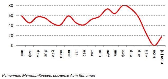"Хотя ситуация с заказами остается напряженной, в июле производство будет существенно выше, чем во время проведения ремонтов. Перебои с заказами будут временными на наш взгляд, учитывая существенные объемы строительства трубопроводов в СНГ", - приводятся в обзоре словам аналитика инвесткомпании Дмитрия Ленды.