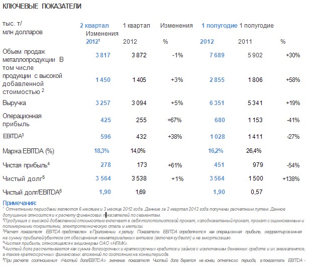 Вице-президент по финансам НЛМК Галина Аглямова так прокомментировала финансовые результаты НЛМК за 2 квартал 2012 года: