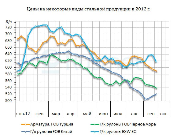 По данным World Steel Association за первые восемь месяцев текущего года, мировое производство стали составило 1018 млн. т, что всего на 0,7% превышает показатели аналогичного периода предыдущего года. Но и это, судя по всему, слишком много. В сентябре на недостаточный спрос (а вернее, избыток предложения) жаловались металлургические компании из Турции и стран Восточной Азии, Индии и США, Западной Европы и СНГ. И практически всем приходилось снижать цены.