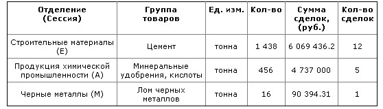 За прошедшую неделю на торгах в Секции товарного рынка ОАО "МФБ" было зарегистрировано 18 сделок, продано 1 910 тонн товаров, на общую сумму более 10,8 млн. рублей.