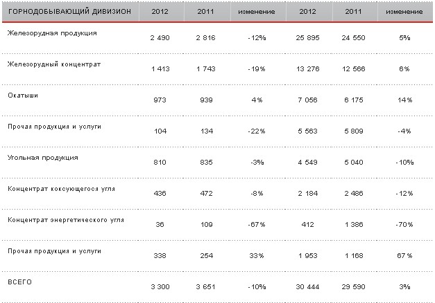 Р’ 2012 РіРѕРґСѓ, продажи концентрата коксующегося угля снизились РЅР° 8% (US$36 млн.) РїРѕ сравнению СЃ предыдущим периодом Рё составили US$436 млн. РћСЃРЅРѕРІРЅРѕР№ причиной снижения выручки было уменьС?ение объемов реализации концентрата РЅР° 302 тыс. тонн (-12%) РІРІРёРґСѓ слабого СЃРїСЂРѕСЃР° РЅР° рынке РЎРЁРђ,