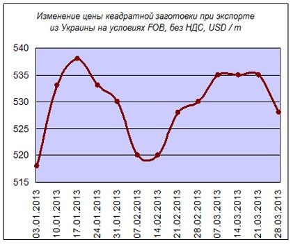 По данным ГП "Укрпромвнешэкспертиза" (УПЭ), март 2013 года начался с подорожания слябов и некоторых видов плоского проката. В частности, стоимость слябов за первую неделю марта увеличилась на 10 долл., до 520 долл./тонн, на второй неделе она увеличилась еще на 5 долл., до 525 долл./тонн. ИА "Металл-Курьер" зафиксировало увеличение цен слябов ближе к середине месяца, но сразу на 20 долл., до 540 долл./тонн. Однако во второй половине первого месяца весны их котировки тоже начали снижаться. В результате аналитики УПЭ и МК констатировали удешевление слябов до 515 долл./тонн к концу марта.