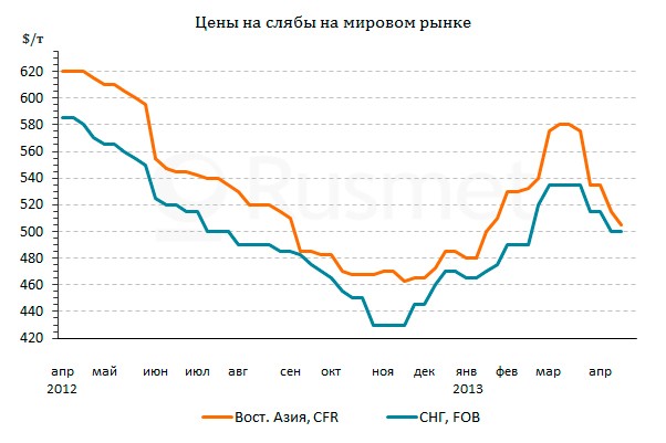 Вообще, рынок товарных слябов (в отличие от заготовок) в последнее время заметно сузился. Все большая часть международных поставок полуфабрикатов осуществляется в рамках внутрикорпоративных связей. Так, практически весь экспорт российских и украинских слябов в страны Евросоюза осуществляется именно по такой схеме. В Азии в прошлом году резко сократила закупки таиландская компания Sahaviriya Steel Industries, обзаведшаяся собственным сталеплавильным производством в Великобритании. Корейская Dongkuk Steel в первом квартале 2013 года импортировала 334 тыс. т полуфабрикатов, на 45% меньше, чем за тот же период годичной давности, поскольку весной прошлого года она была вынуждена остановить линию по производству 1,5 млн. т толстолистовой стали в год.