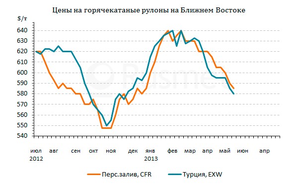 Турецкие производители листовой стали в первой половине мая тоже были вынуждены идти на уступки. Тесные экономические связи между Турцией и европейскими странами, ставшие основой турецкой модернизации в 90-2000-е годы, сегодня превратились в тормоз. Спрос на турецкие экспортные товары сократился, соответственно, уменьшились и объемы потребления плоского проката. Кроме того, повышенную активность на национальном рынке проявляют поставщики из СНГ и балканских стран.