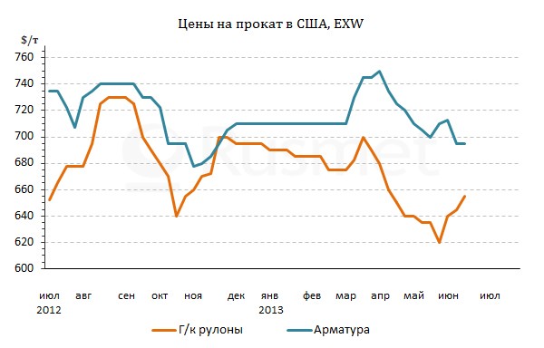 Причиной этого подъема специалисты называют увеличение видимого спроса на стальную продукцию во второй половине мая – начале июня. В последнее время в США наблюдается рост в таких отраслях как автомобилестроение и строительство. Кроме того, июньское понижение курса доллара относительно евро и иены повышает конкурентоспособность американских товаров на мировом рынке. Наконец, трейдеры, которые в течение января-апреля старались минимизировать складские запасы, в мае расширили закупки.