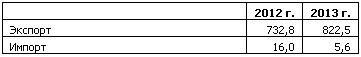 Экспорт-импорт чугуна в 2012-13 гг., тыс. т: